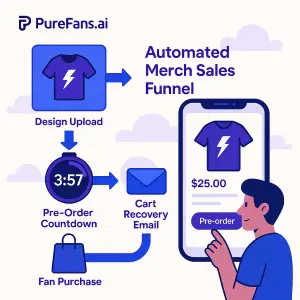 Upload your designs, set your pricing, and turn on the merch funnel. PureFans drives sales while you focus on your art.